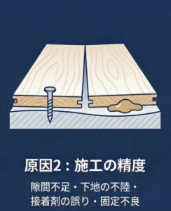 床鳴りを引き起こす本当の要因は、「無垢材そのものの性質」と「施工の精度」という、