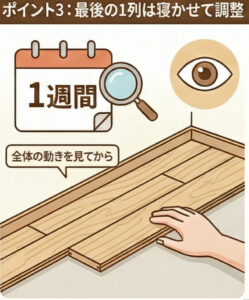 それは「最後の1列は、張り終えるまでに1週間ほど期間を置いてから施工する」という方法です。