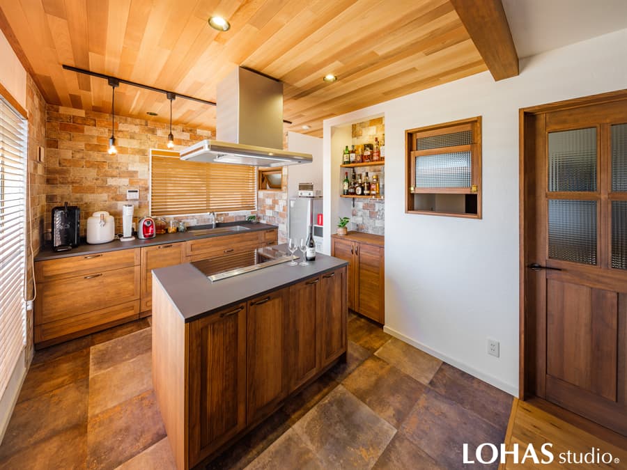 【施工事例】無垢造作家具 カウンターキャビネット パイン ミディアムブラウン塗装
