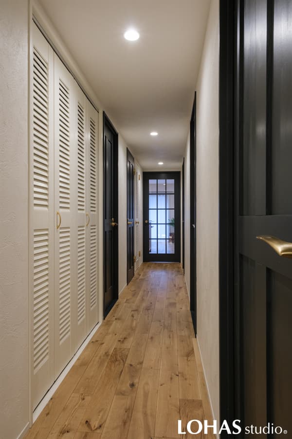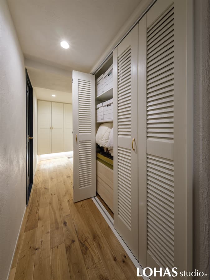 【施工事例】無垢建具 クローゼット ルーバー仕様 パイン 現場塗装