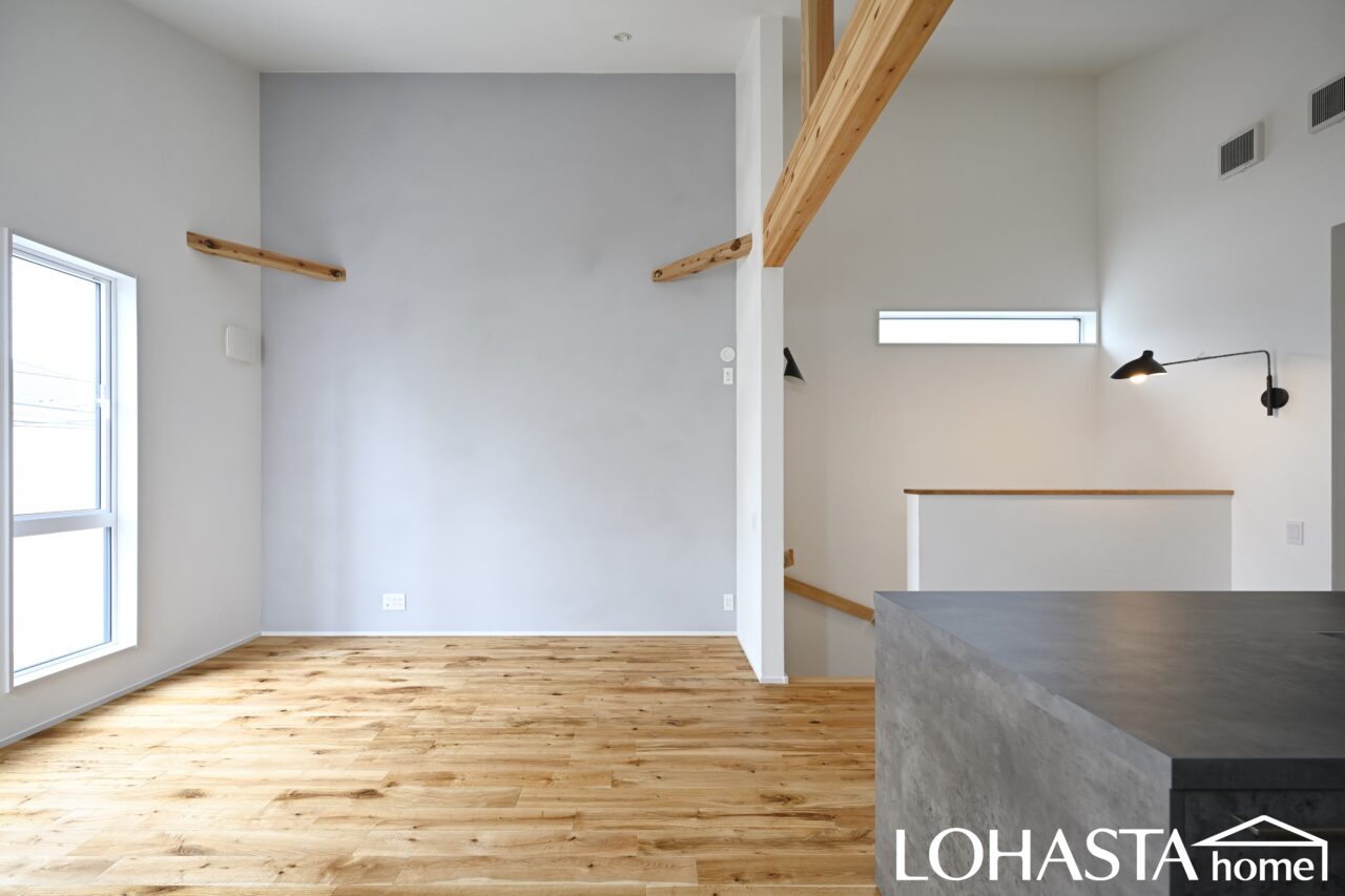 【施工事例】内外装塗り壁材 EM漆喰 ES-11 シルバーグレー 壁施工