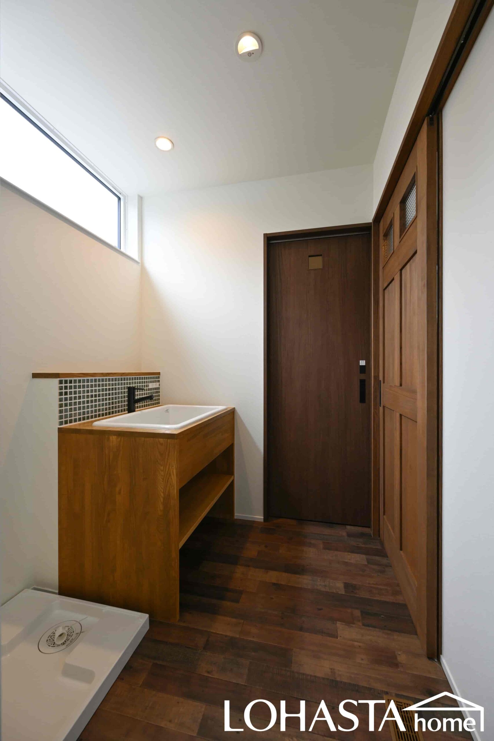【施工事例】無垢建具 室内ドア 上吊り片引き戸 アッシュ ミディアムブラウン塗装