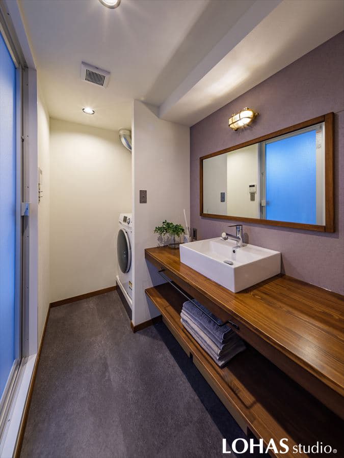 【施工事例】無垢木枠ミラー 壁掛けタイプ パイン ミディアムブラウン塗装