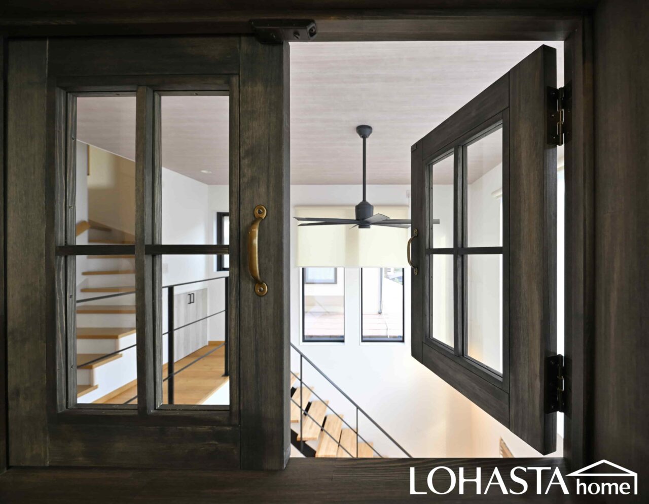 【施工事例】無垢室内窓 インテリアウィンドウ 観音窓 パイン ブラック塗装