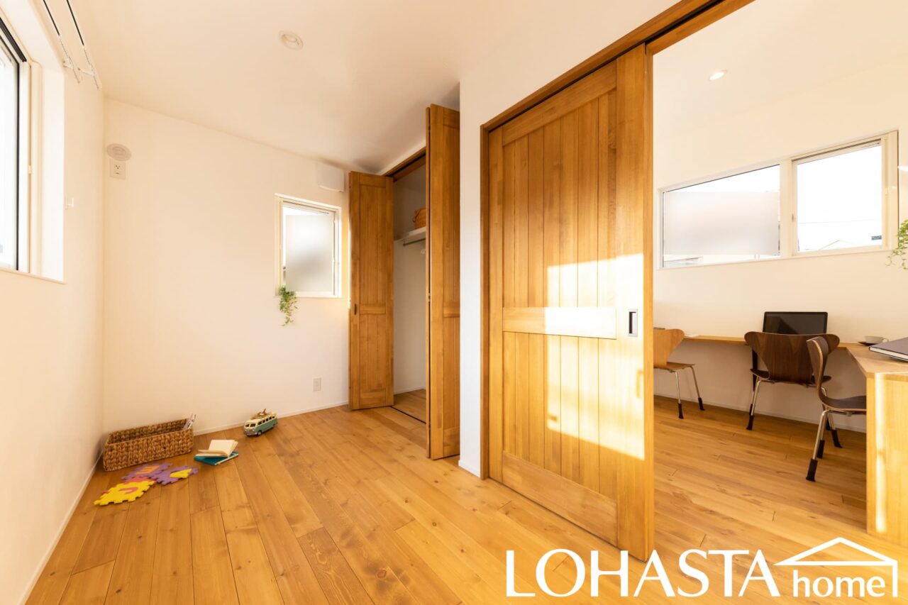 【施工事例】無垢建具 室内ドア 片開き戸 上吊り片引き戸 パイン ナチュラルオーク塗装