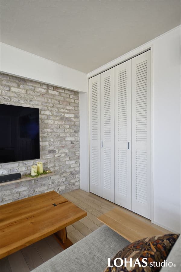 【施工事例】無垢建具 クローゼット ルーバー仕様 パイン 現場塗装
