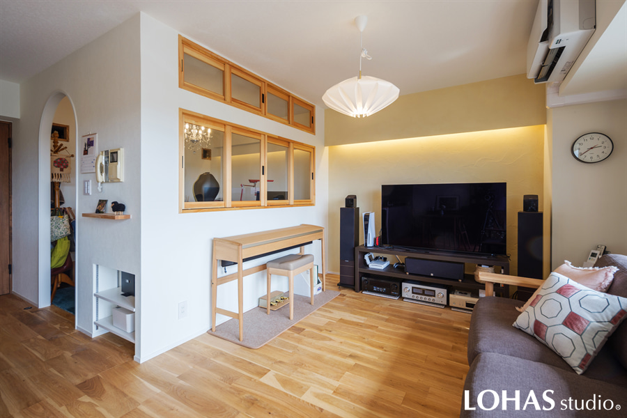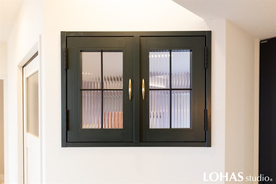 【施工事例】無垢室内窓 インテリアウィンドウ 観音窓 パイン 現場塗装