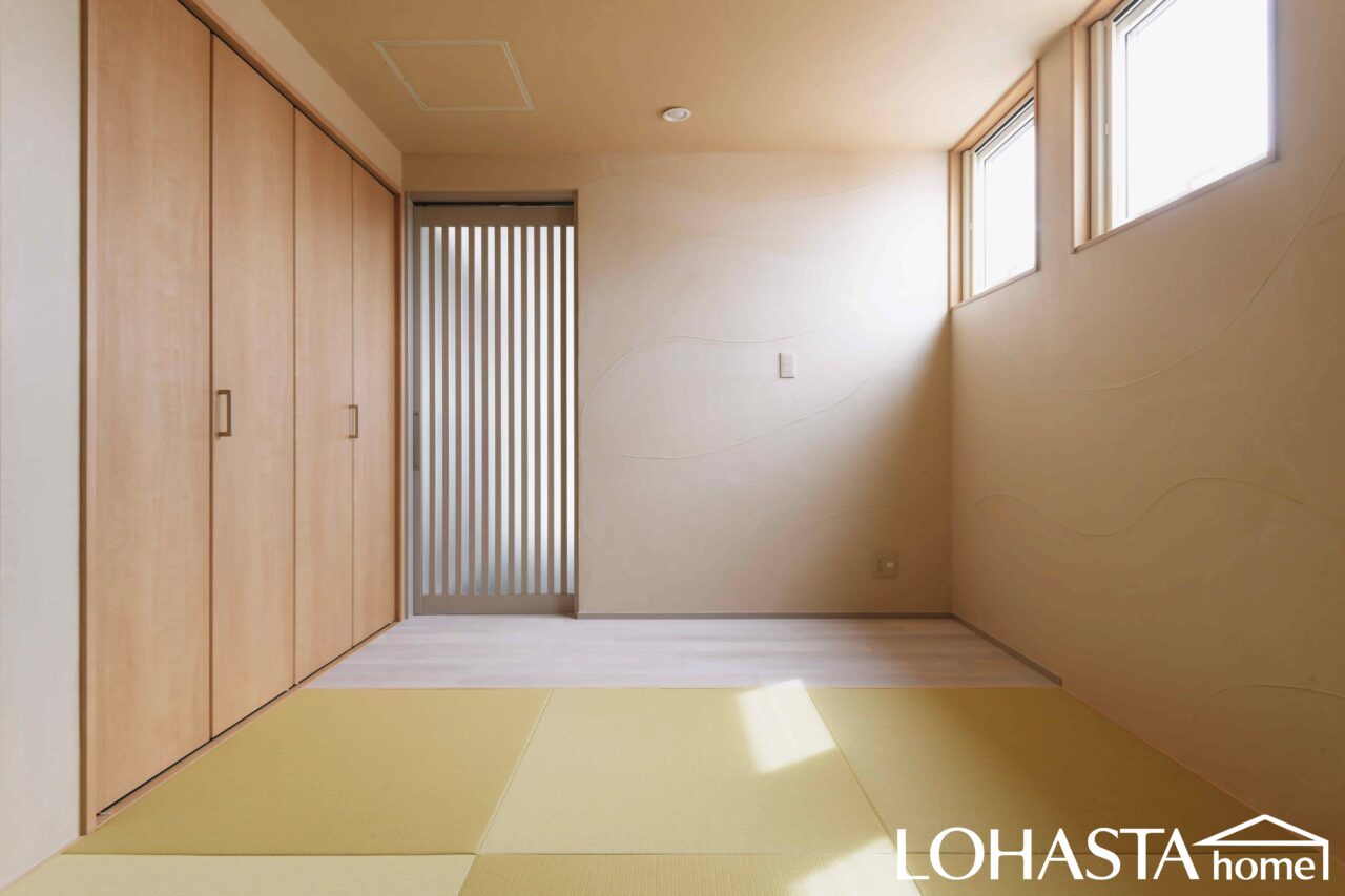 【施工事例】内装塗り壁材 EM珪藻土 EM-33 木蘭(もくらん) 天井・壁施工