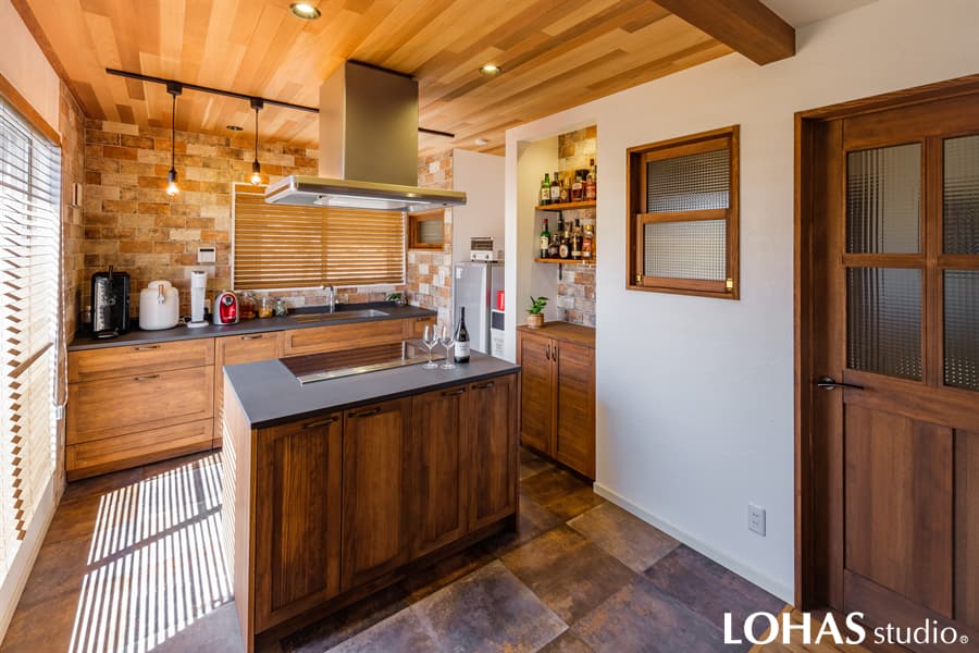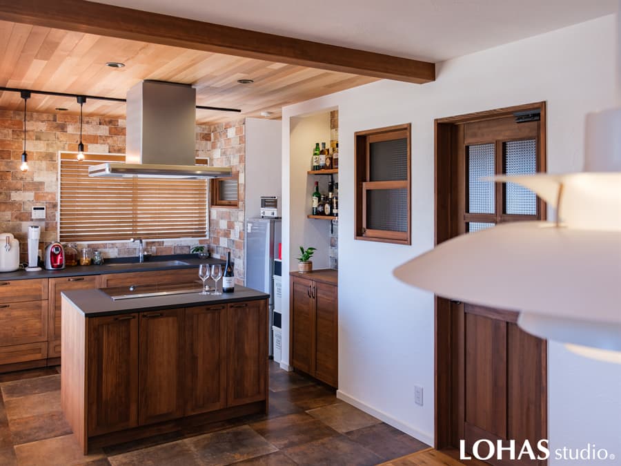 【施工事例】無垢造作家具 カウンターキャビネット パイン ミディアムブラウン塗装
