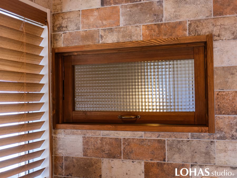 【施工事例】無垢室内窓 インテリアウィンドウ 横軸回転窓 パイン ミディアムブラウン塗装