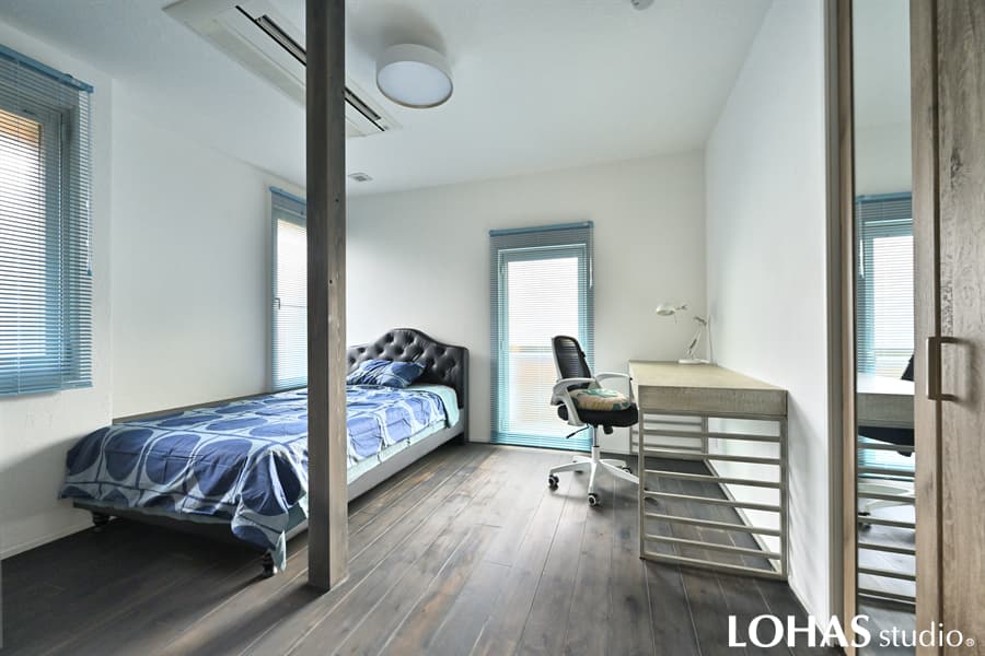 【施工事例】無垢フローリング パイン ダークグレー塗装