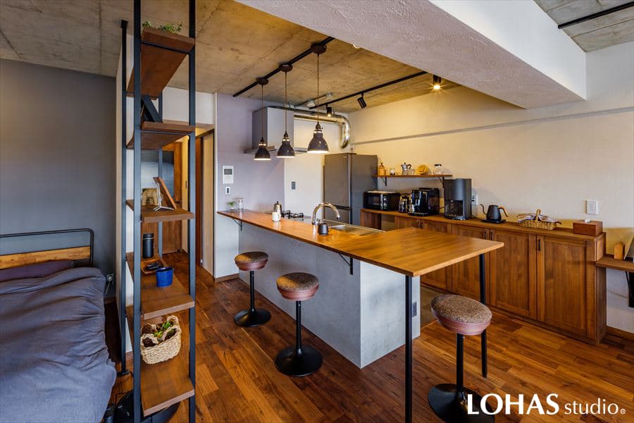【施工事例】無垢造作家具 カウンターキャビネット パイン ミディアムブラウン塗装